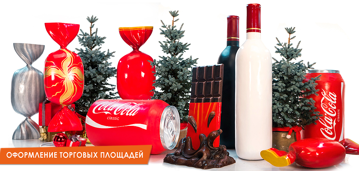 - Вариативность решений. Возможно изготовление фигур в фирменных цветах, с логотипом, дополнительными элементами (вывески, таблички, бренд-холдеры).