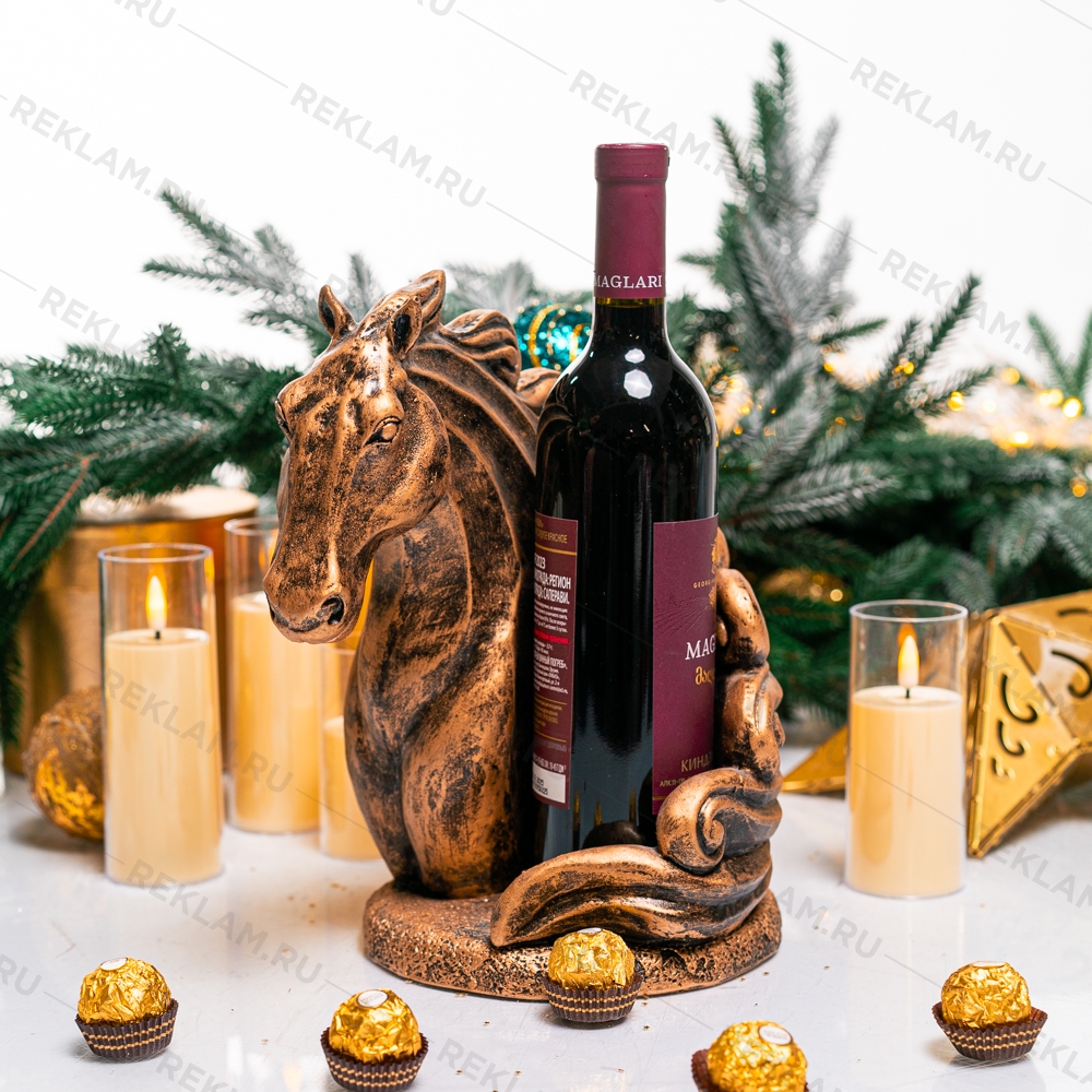 Эта бутылочница в форме коня – идеальный союз функциональности и искусства! Модель U09425 из полистоуна высотой 30 см украсит вашу кухню, гостиную или барную зону, служа удобным местом для бутылок с вином, уксусом или специями.
