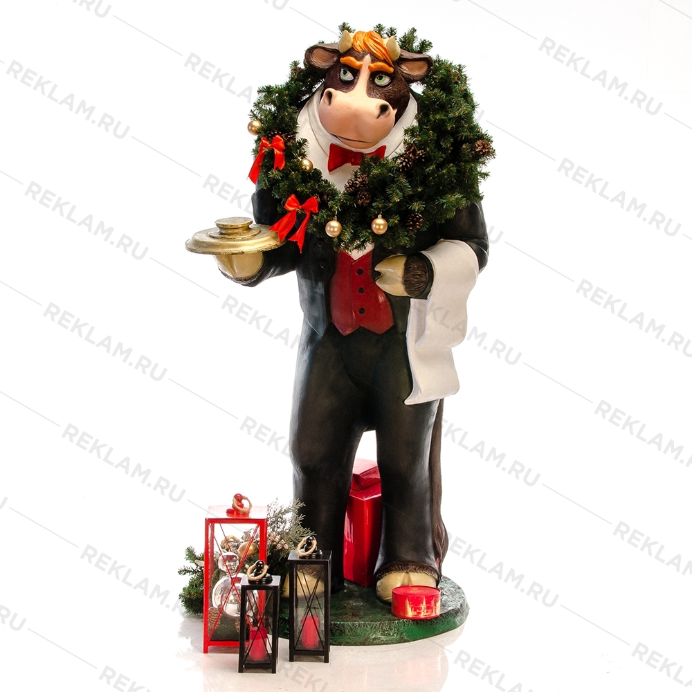 Заказать изготовление изделия "Фигура объёмная Бык официант h 183 см"