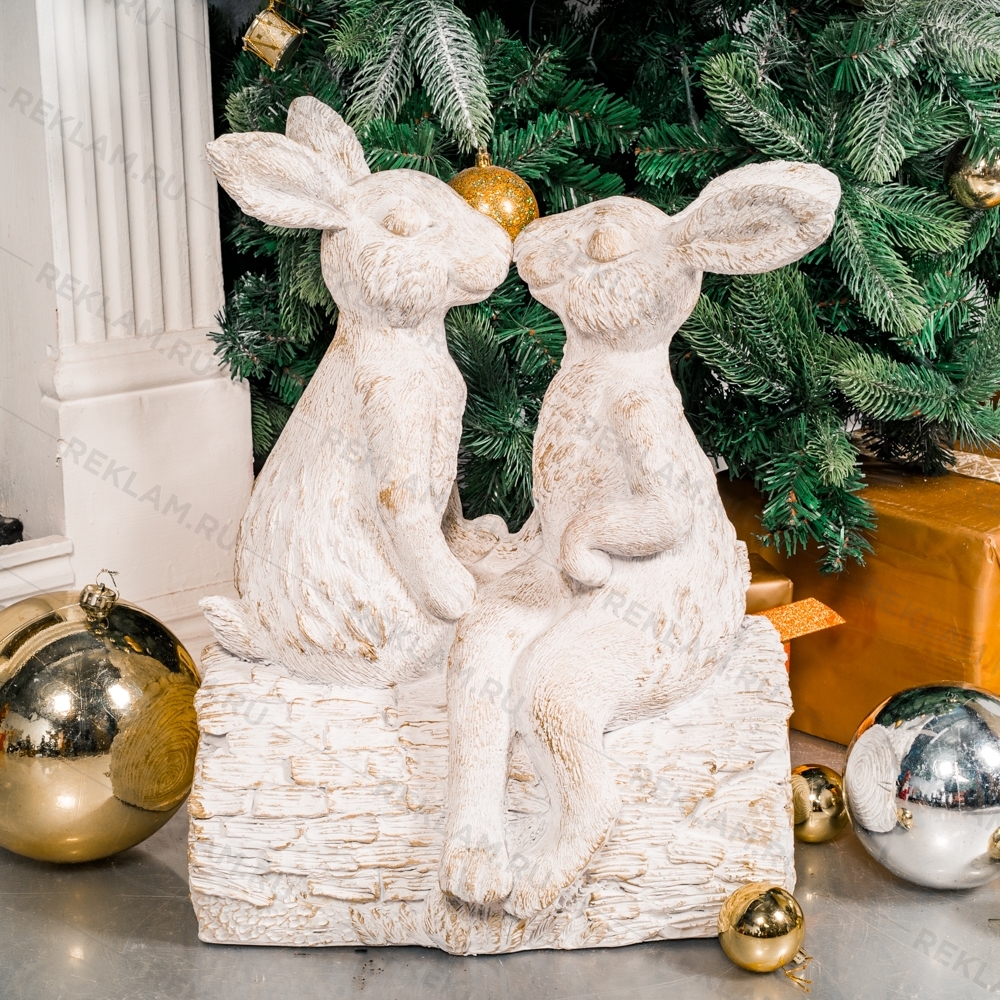 Заказать изготовление изделия "Рекламная объёмная фигура Зайцы влюблённые, полистоун, высота 36 см, белый с золотом"