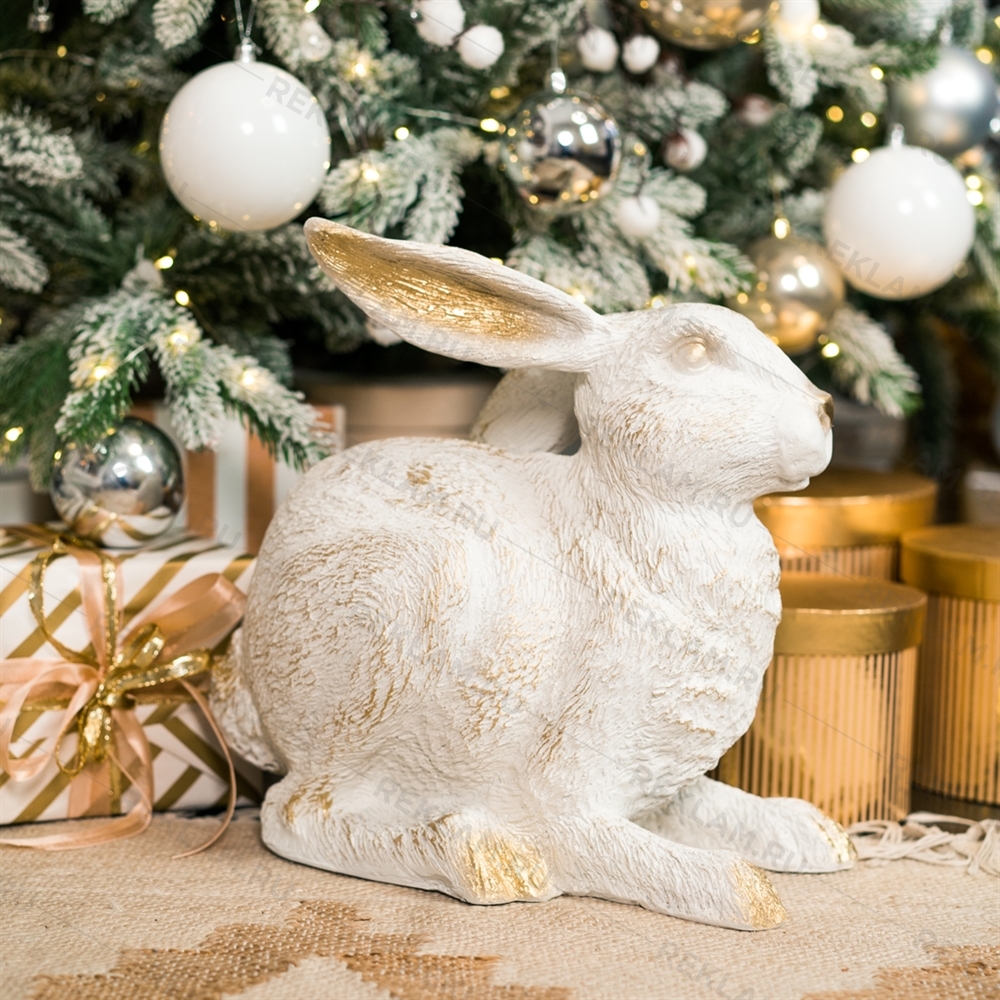 Готовые предложения - Фигура объёмная для декораций Заяц F07429-WG полистоун белый с золотом высота 36 см F07429-WG