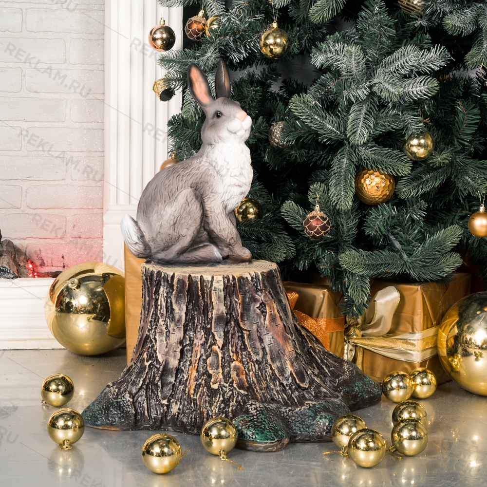 Зайцы кролики - Фигура объёмная для детского парка Заяц на пне F07062-Gray, полистоун, серый, 65 см F07062-Gray