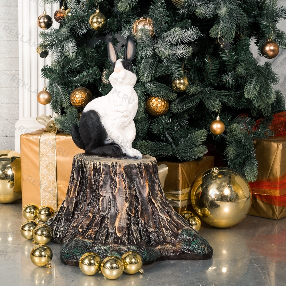 Готовые предложения - Фигура объёмная для детского парка Заяц на пне F07062-WBL, полистоун, белый с чёрным, 65 см F07062-WBL