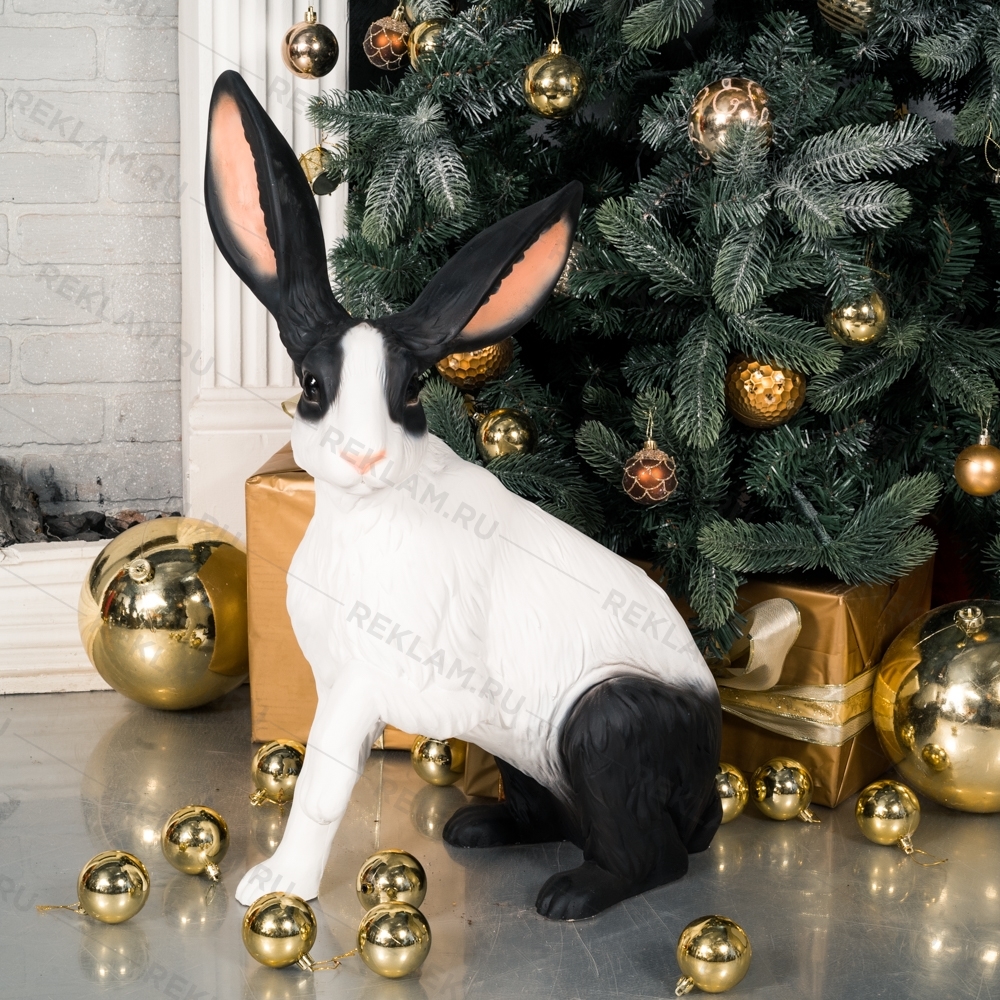 Фигура Заяц украсит детскую площадку или парк, витрину магазина или ТЦ, фотозону или входную группу ресторана. Без сомнения, привлекут к себе внимание клиентов внешний вид и покраска в белый с чёрным цвет, близкие к натуральному.