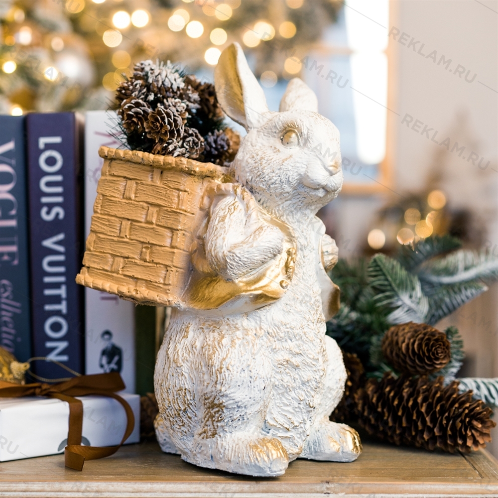 Кашпо декоративное для растений Заяц U09092-WG полистоун цв.белый с золотом высота32 см