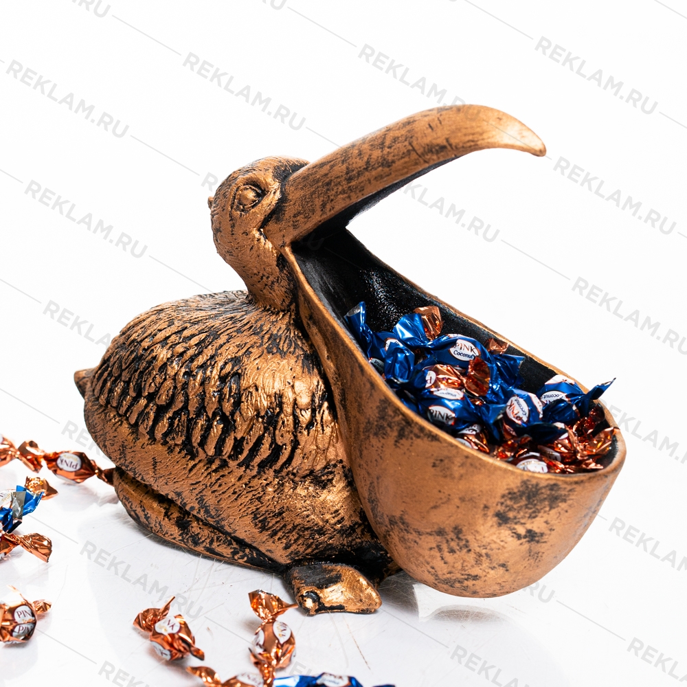 - Практичное применение: Удобная форма для хранения конфет, шоколада или небольших угощений – открытый клюв пеликана служит вместительным контейнером. Подходит для зон ресепшена, баров или детских уголков, стимулируя импульсные покупки и повышая удовлетворённость клиентов.