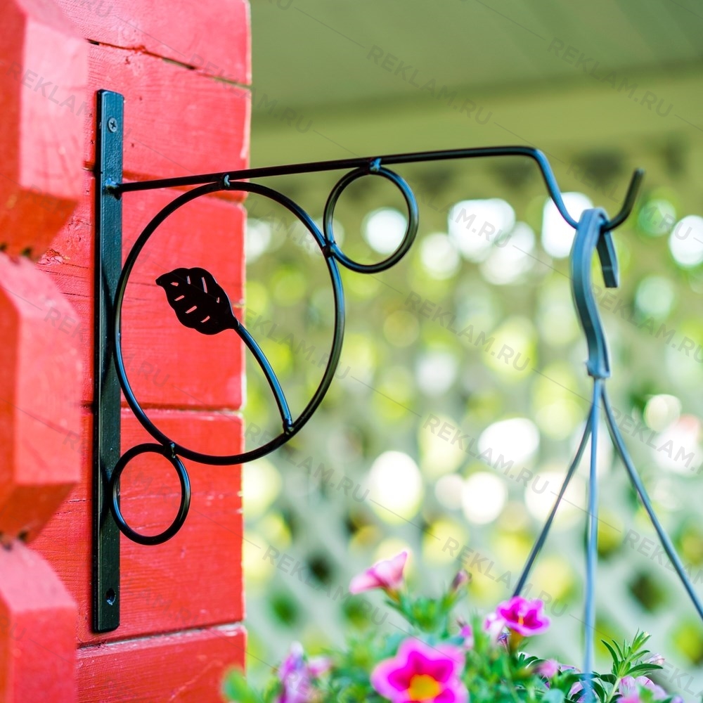 Кронштейн для цветов на стену. Крепится с помощью саморезов на вертикальную поверхность. Имеются декоративные элементы. Материал изготовления - металл.