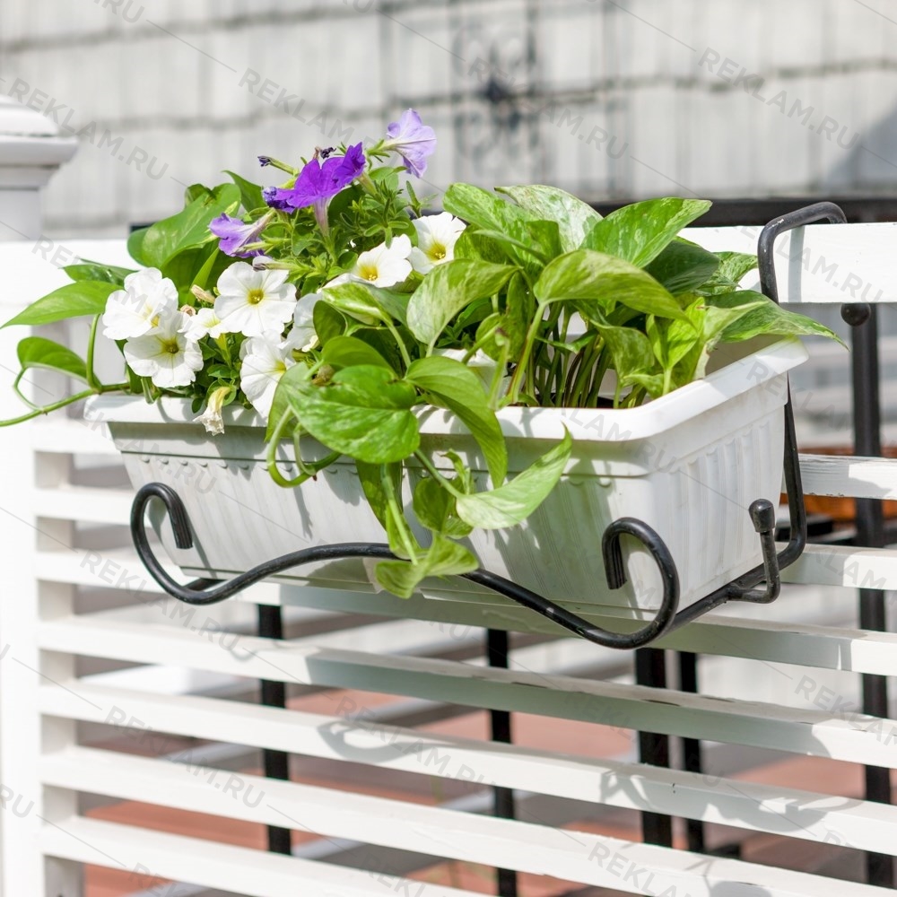 Кованая подставка для балконных ящиков, крепится с помощью шурупов на вертикальную поверхность. Выполнена из высококачесвтенного материала, покрашена в черный цвет.