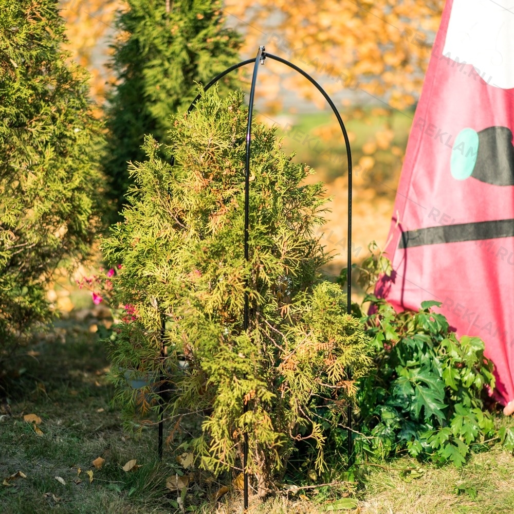 Каркас выполнен из трех металлических опор, собранных сверху болтом и гайкой. Легок и функционален, его можно размещать на всех растениях: хвойниках, кустарниках, розах и т.д. Высота каркаса 95 см.