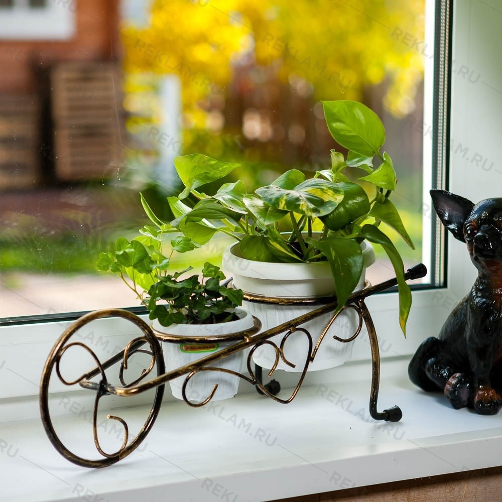 Подставка для цветов на подоконник позволит компактно разместить растения. Предназначена подставка для размещения двух горшечных растений. Выполнена из высококачественного материала с элементами художественной ковки.