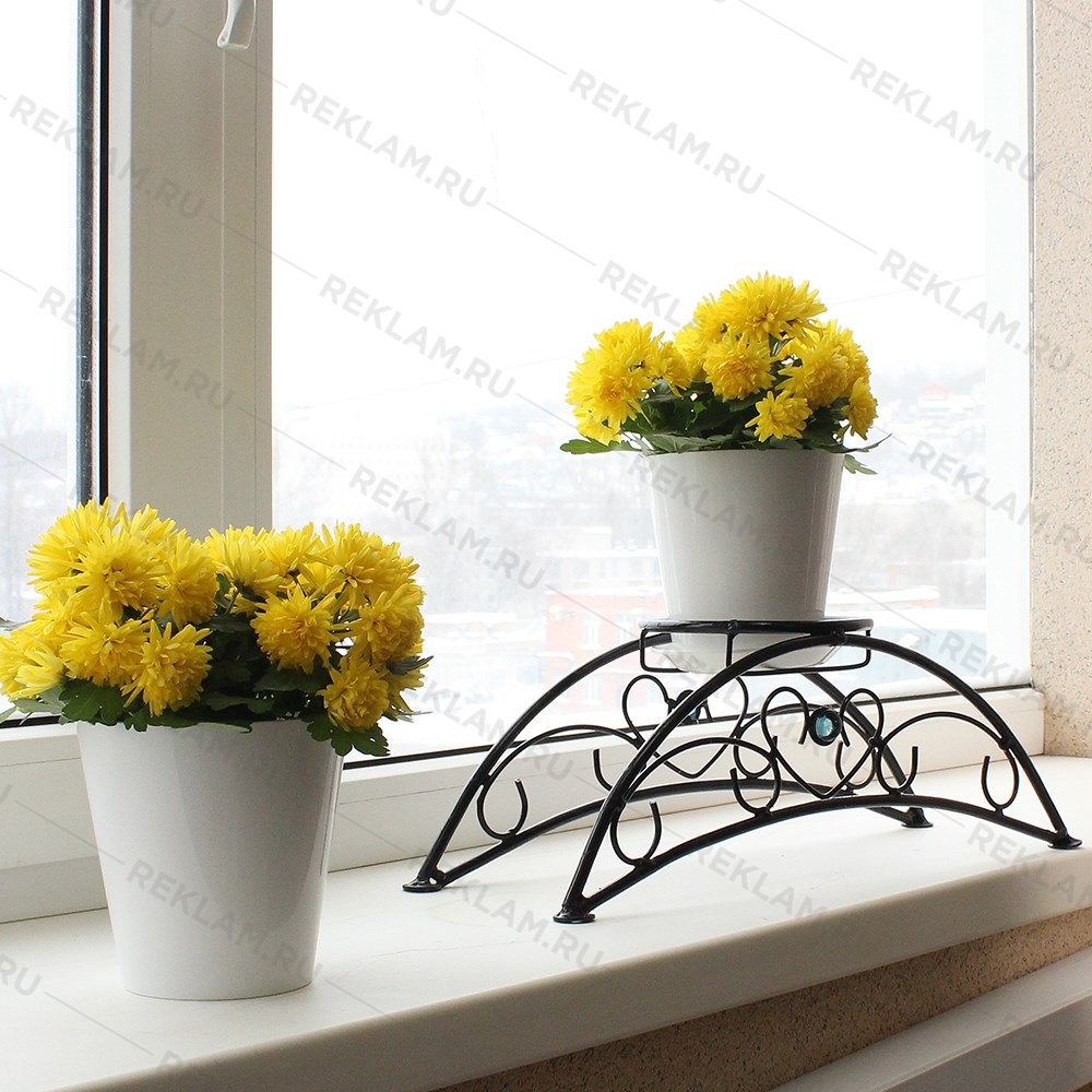 Подставка на окно для цветов. Кованая изящная подставка будет украшением подоконника в зимнее время года. Вмещает одно горшечное растений. Устойчивые ножки прочно удерживают горшок, а декоративные камни добавляют особый шик.