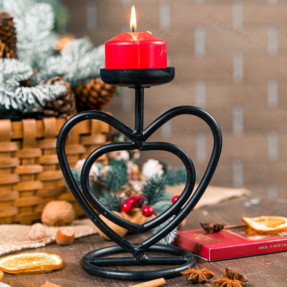 Подсвечник на одну свечу арт. 607-21. Материал изготовления: металл. Покраска в черный, белый, красный цвета. Подходит для размещения на столе, полке, а также тумбочках, комоде или камине. Декоративные элементы: сердце. Является оригинальным подарком на праздники.
