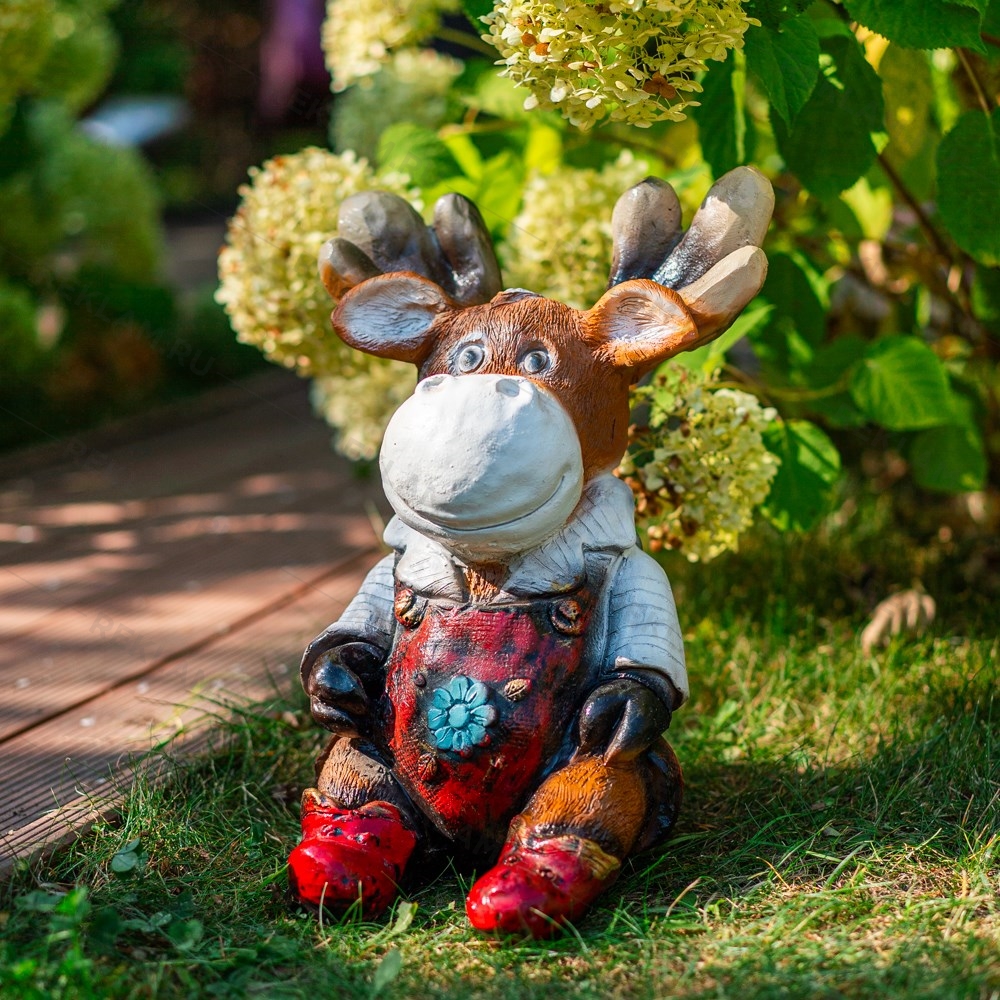 Эта милая скульптура в форме маленького лосёнка добавит игривости и тепла в ландшафтный дизайн, создавая атмосферу сказки и природы. Благодаря прочному материалу, устойчивому к погодным условиям, фигура сохранит свой вид годами, не требуя особого ухода. Идеальный выбор для любителей тематических садов или семейных участков, где ценят уют и оригинальность.