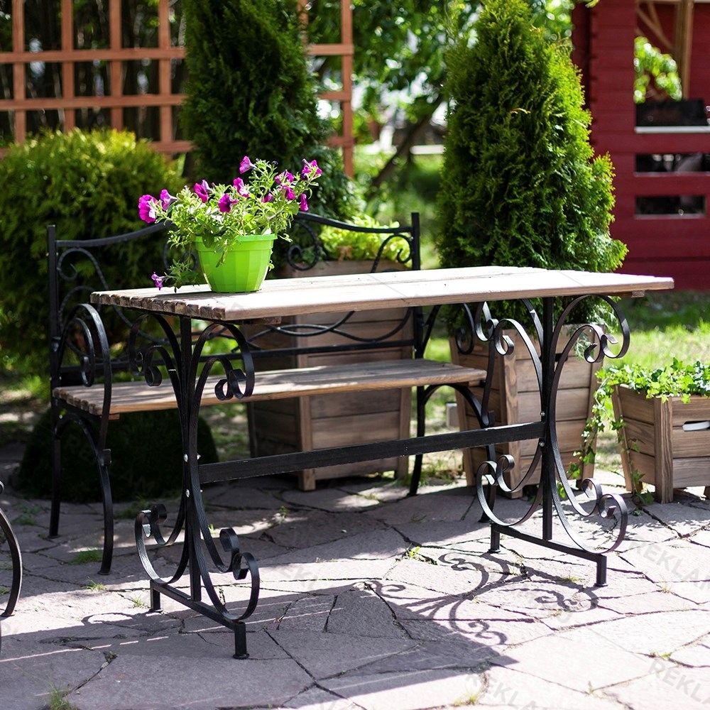 Стол уличный с изящными коваными деталями.