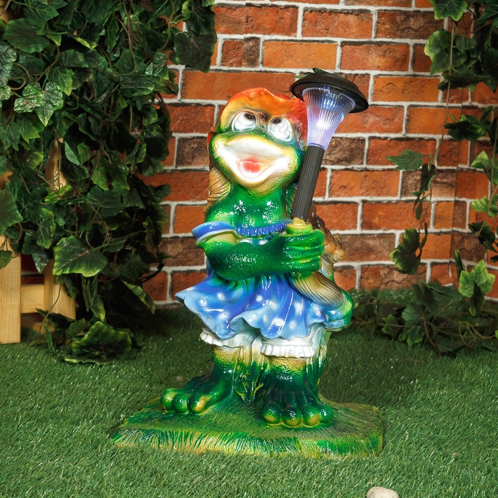 Садовый светильник Лягушка кокетка F07764 полистоун высота 52см